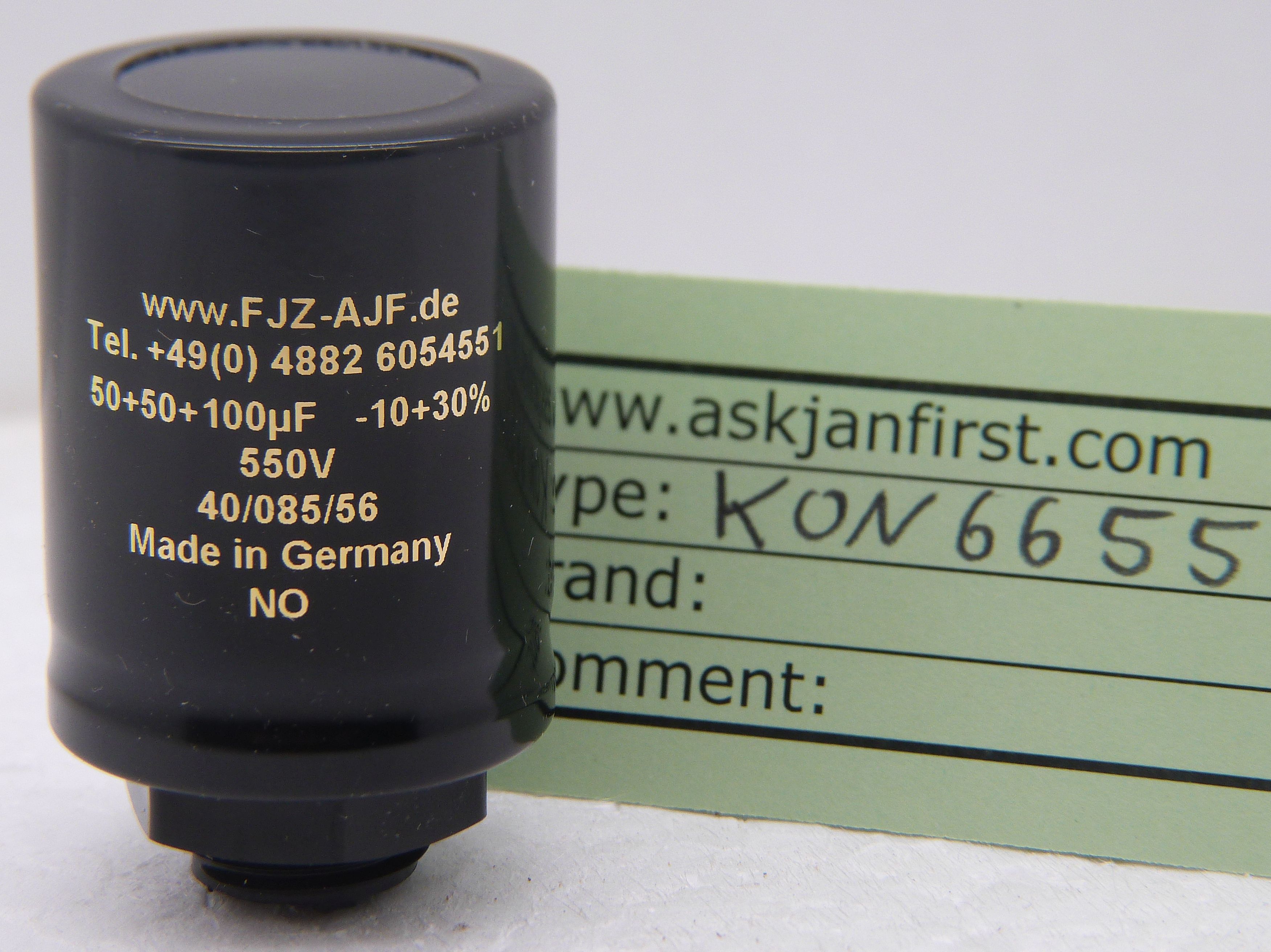 KON6655 | Sondertype 50+50+100uF, 550V Minus an Lötfahne. Für z.B. Tonbandgeräte, aber auch natürlich als universeller Dreifachelko. Kompakter Becher, 35*45 | Special type, triple, negative on solder lug, 50+50+100uF, 550V, special for european tape recorders and - of course - also a multi purpose can cap. Can 35*45mm | Chimique spécial, 50+50+100uF 550V, taille 35*45mm, pour les magnétophones et bien sur aussi comme type universel. | 27,90 | 33,20 | FTCap